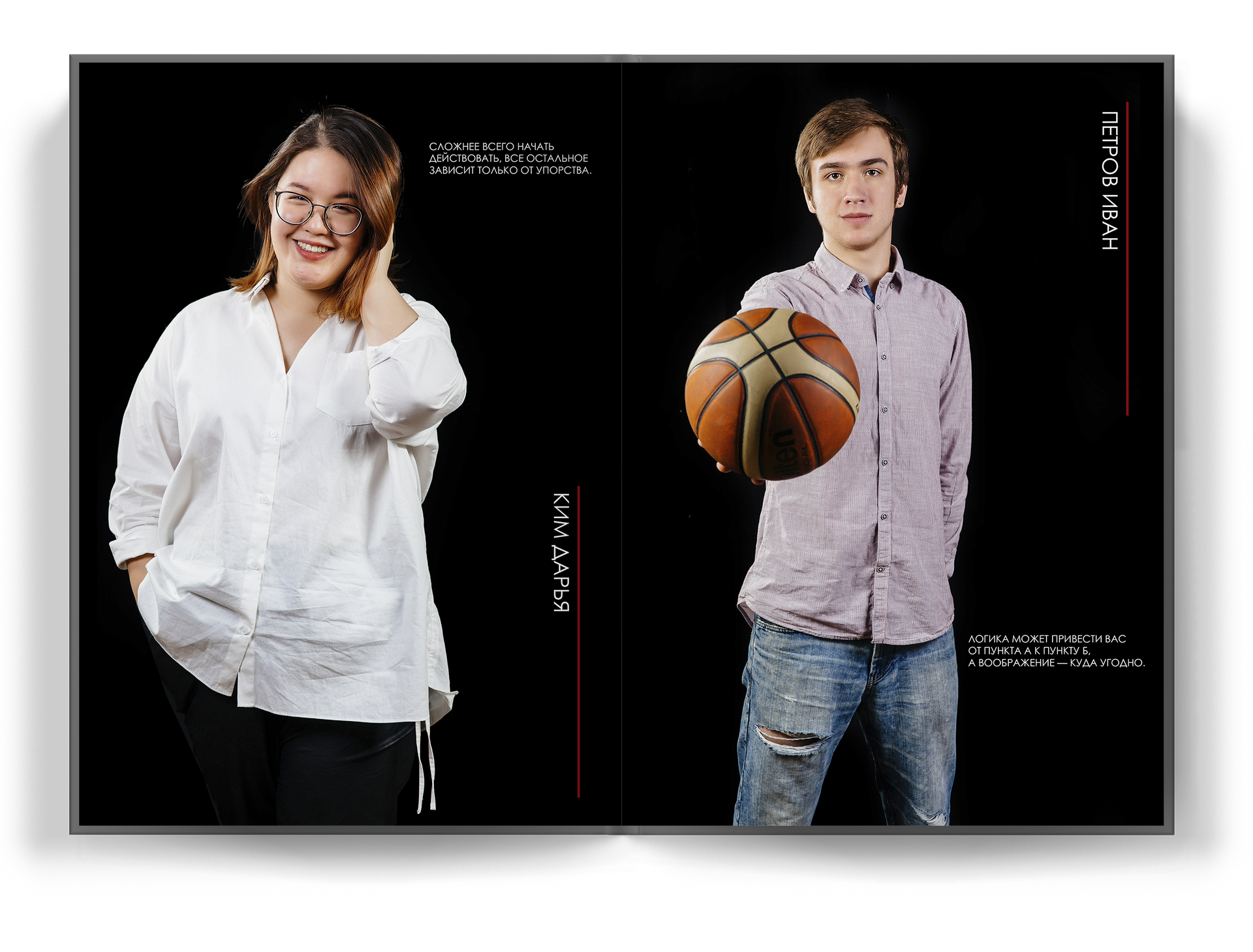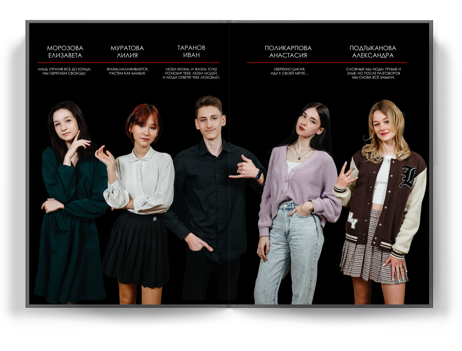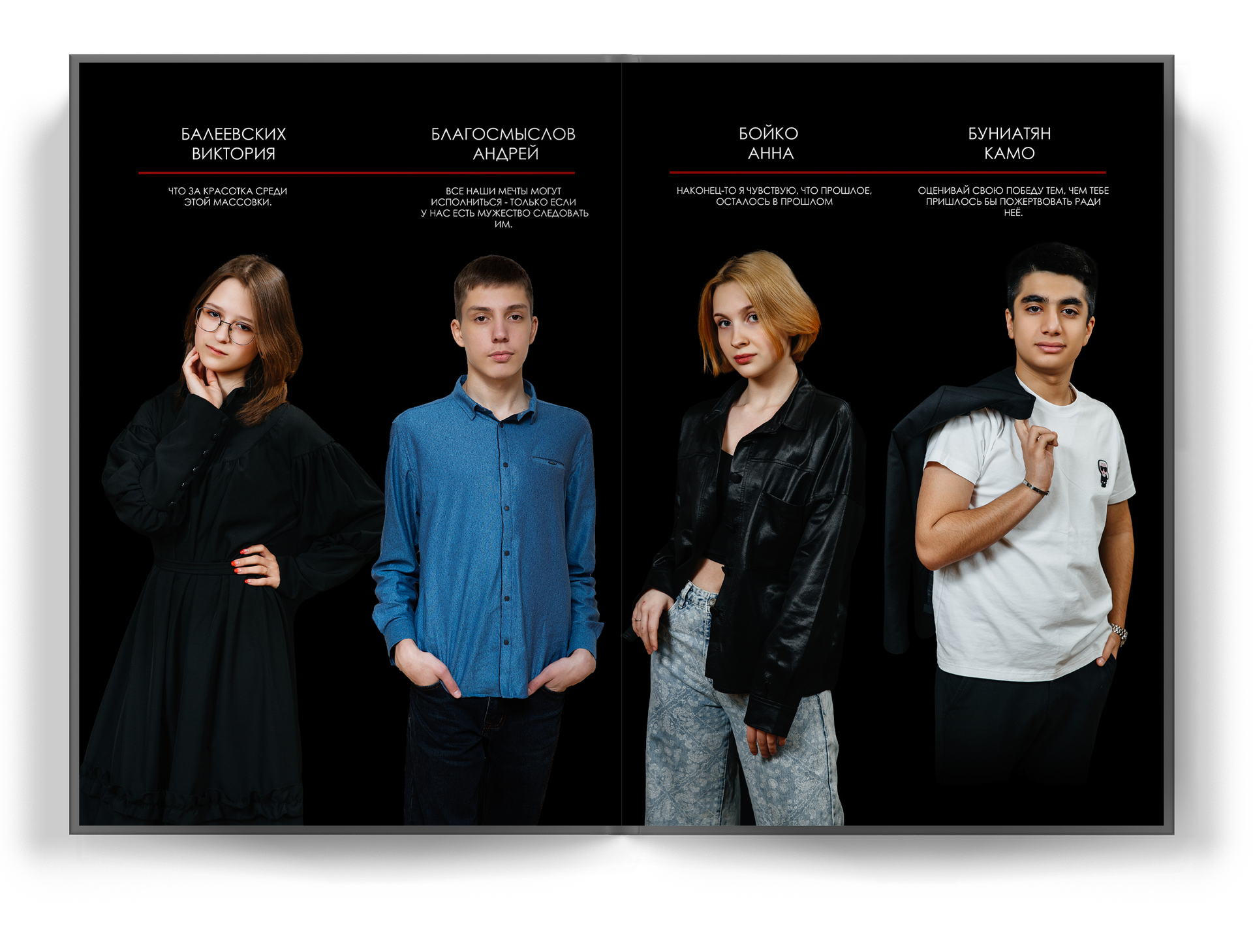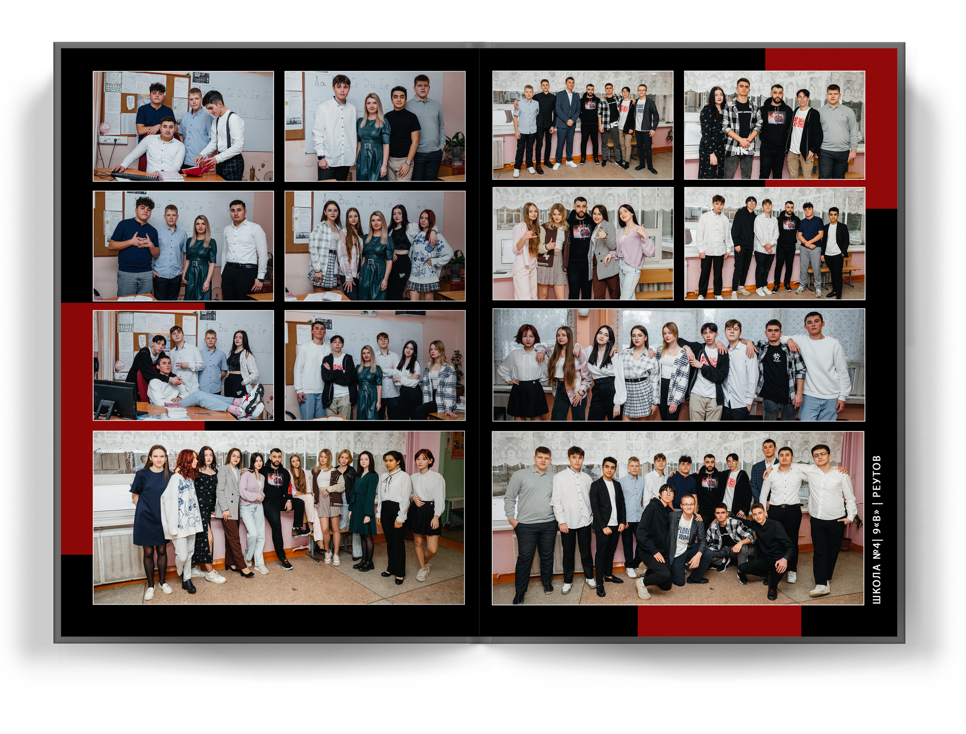 Благодаря оригинальному подходу и высокому профессионализму мастеров нашей студии, даже такие привычные места, как школьная столовая, спортзал, коридоры, кабинеты становятся оригинальными и передают атмосферу и колорит школьных будней. Акцента фотографиям для выпускного альбома 9, 11 класса добавят личные цитаты и пожелания выпускников.