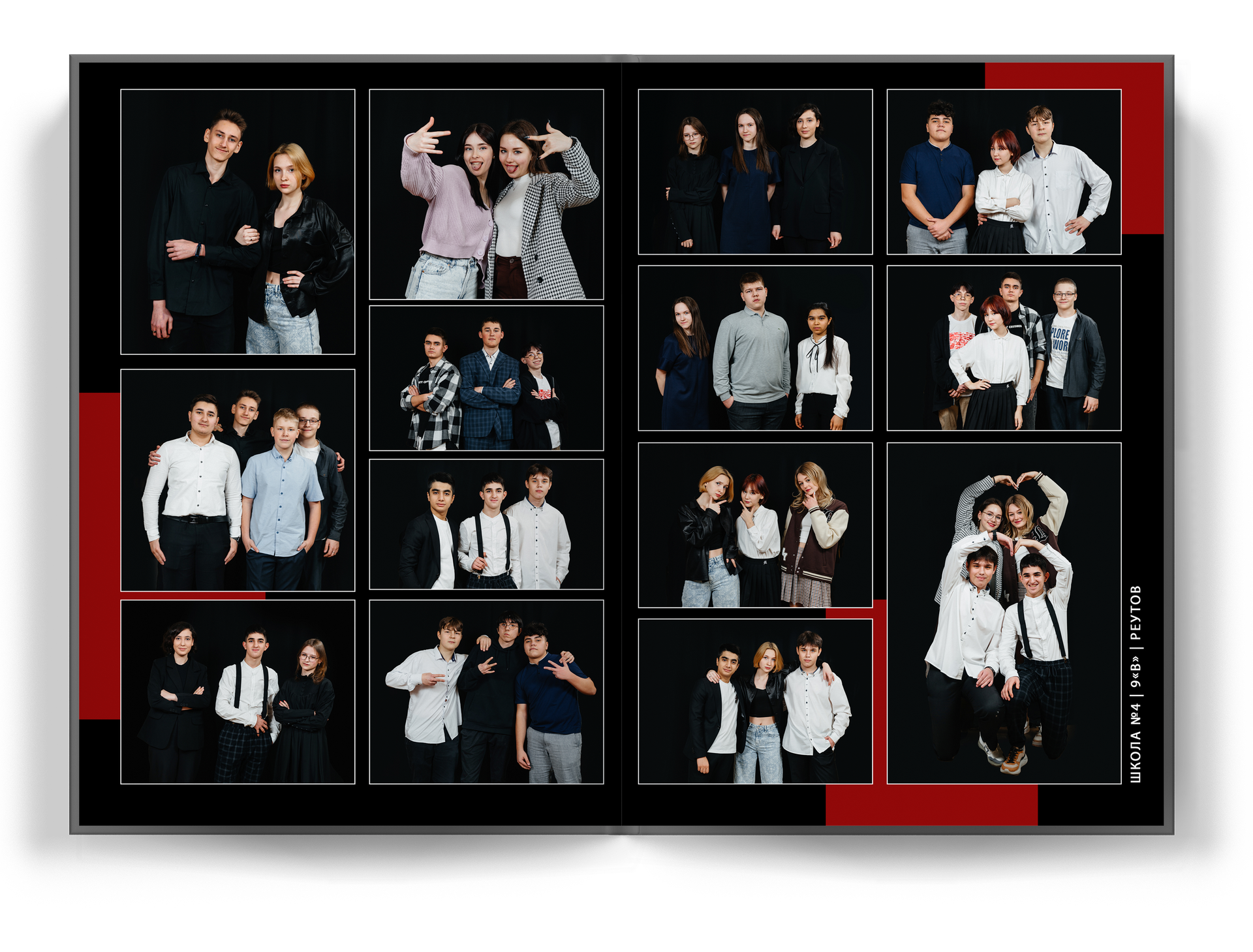 Если ученик пропустил групповую съёмку, то можно приехать в студию с друзьями в другой назначенный нами день и время, либо прислать свои фото с одноклассниками;