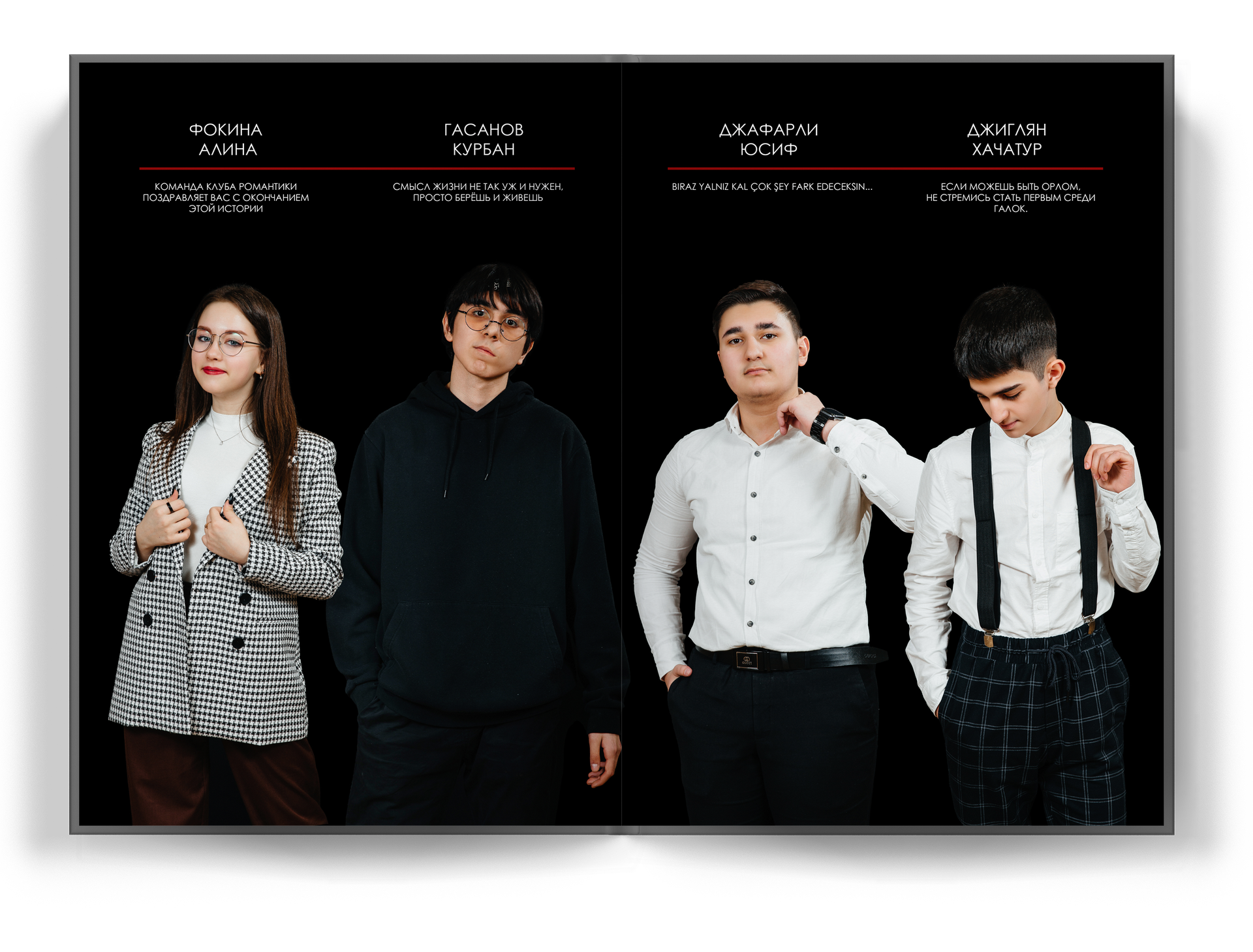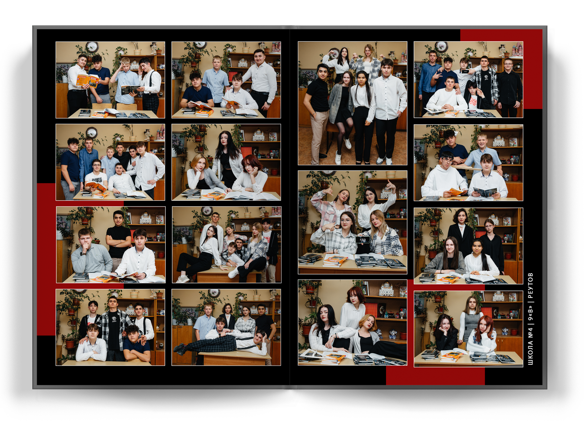 2-3 портрета для каждого выпускника в зависимости от дизайна фотоальбома;