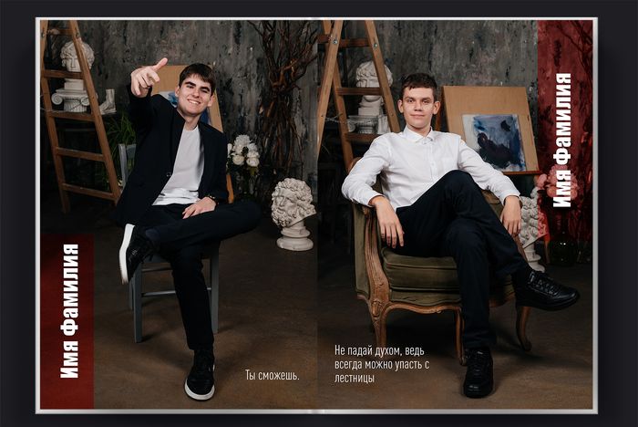 | Наполнение альбома | 2 человека на разворот (т.е 1 человек на страницу) |