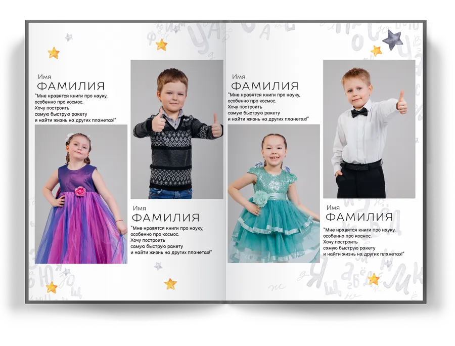 • 1 класс может заказать только один дизайн и ценовой пакет на весь класс.