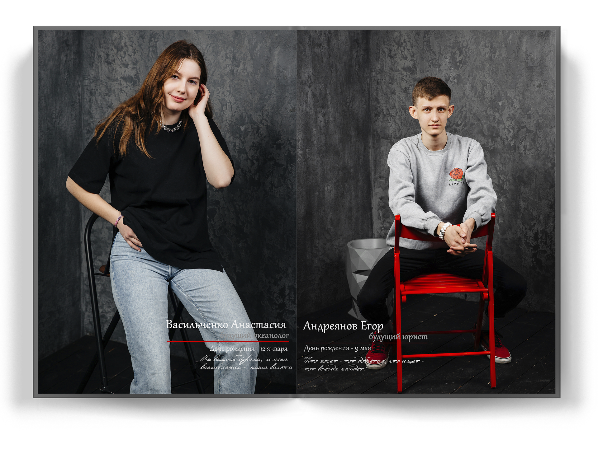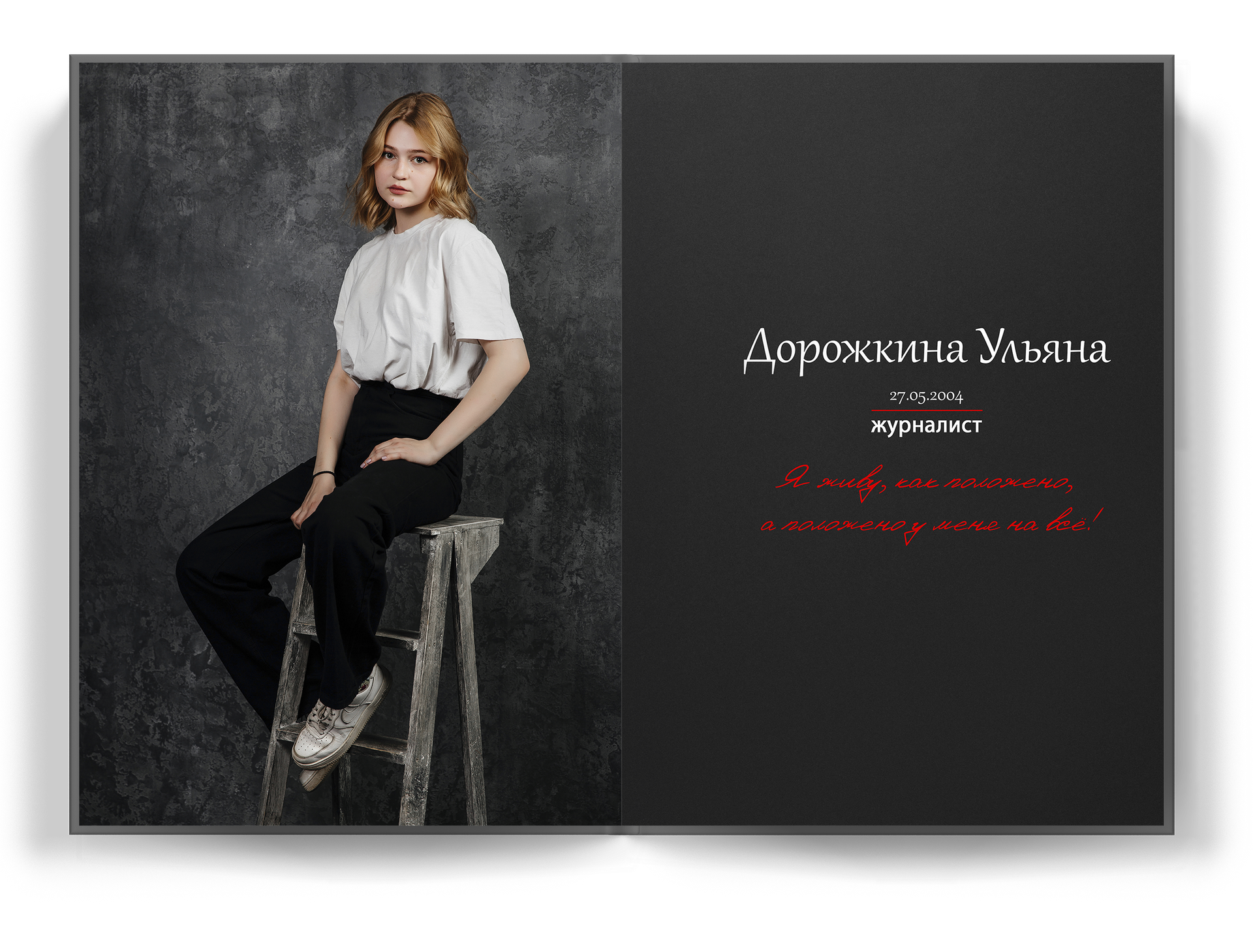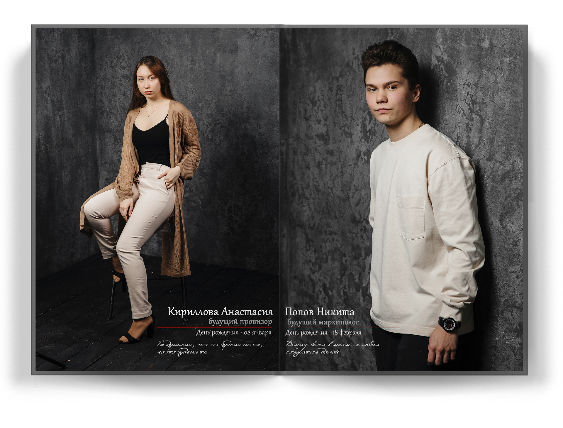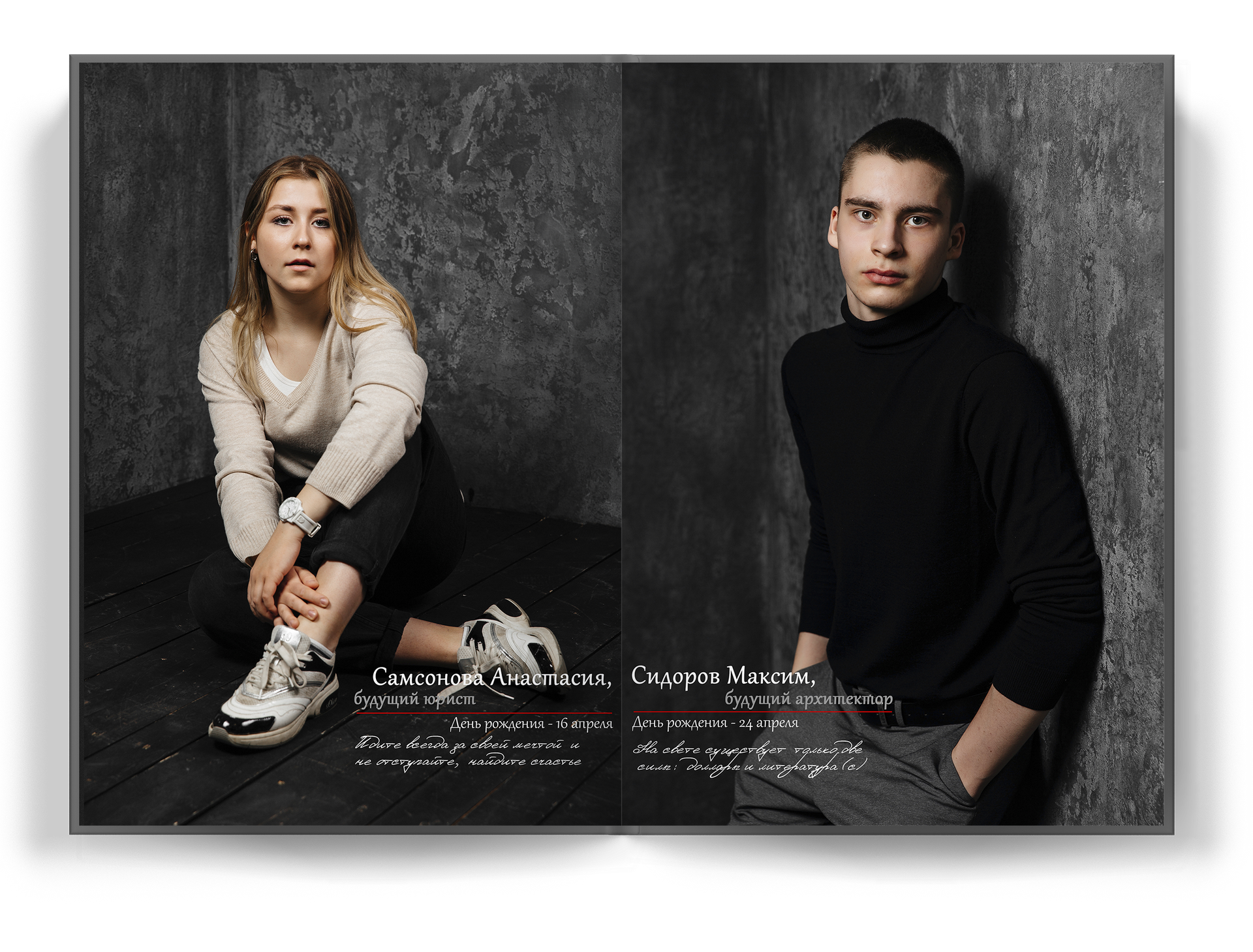 Мы делаем так, чтобы репортажная съемка не просто понравилась детям и родителям живыми кадрами и естественностью. Каждый ребенок — это личность, со своим характером. Наши фото на выпускной альбом 11 класс раскрывают потенциал школьника, а его внутренний мир отражается в личной цитате к каждому снимку.