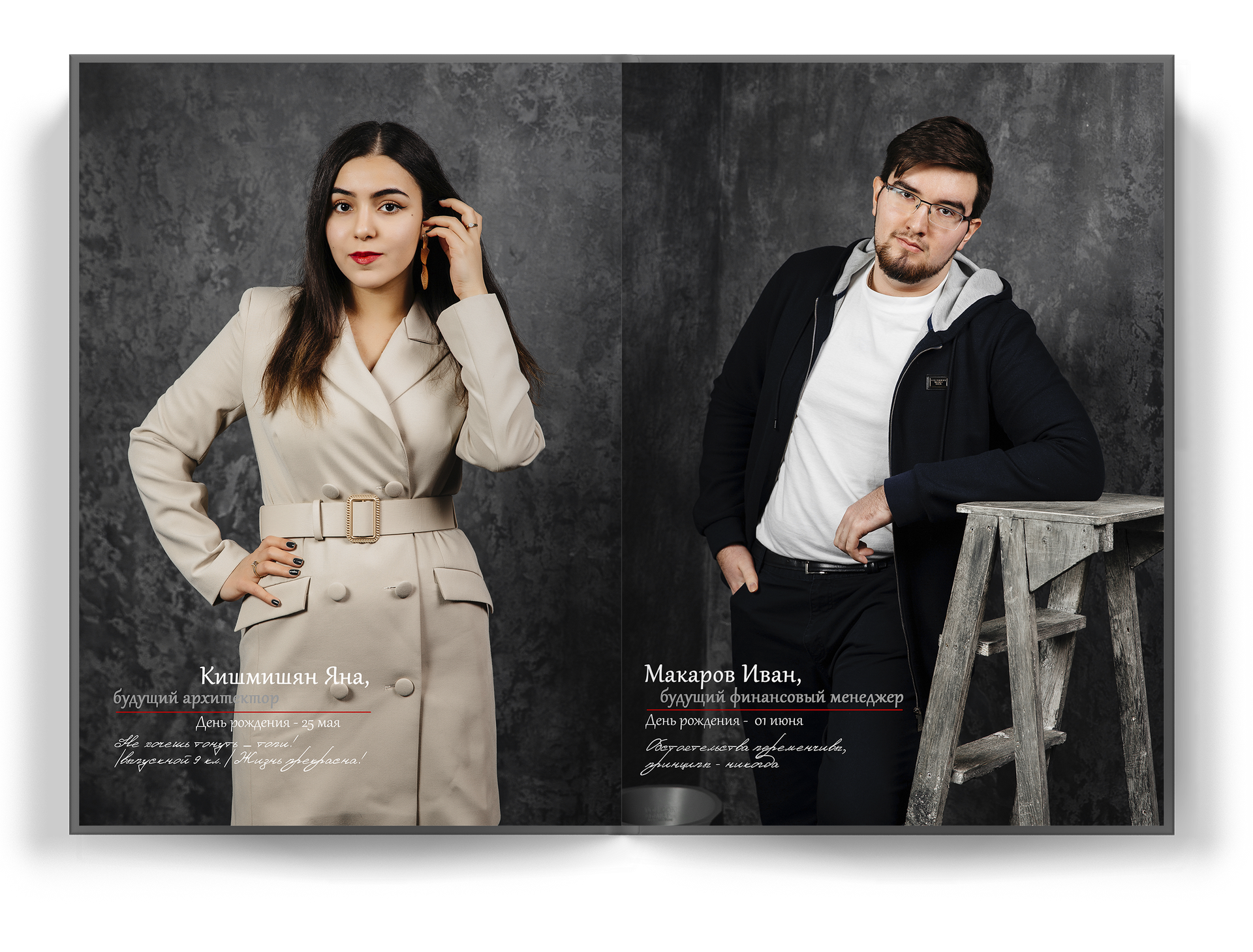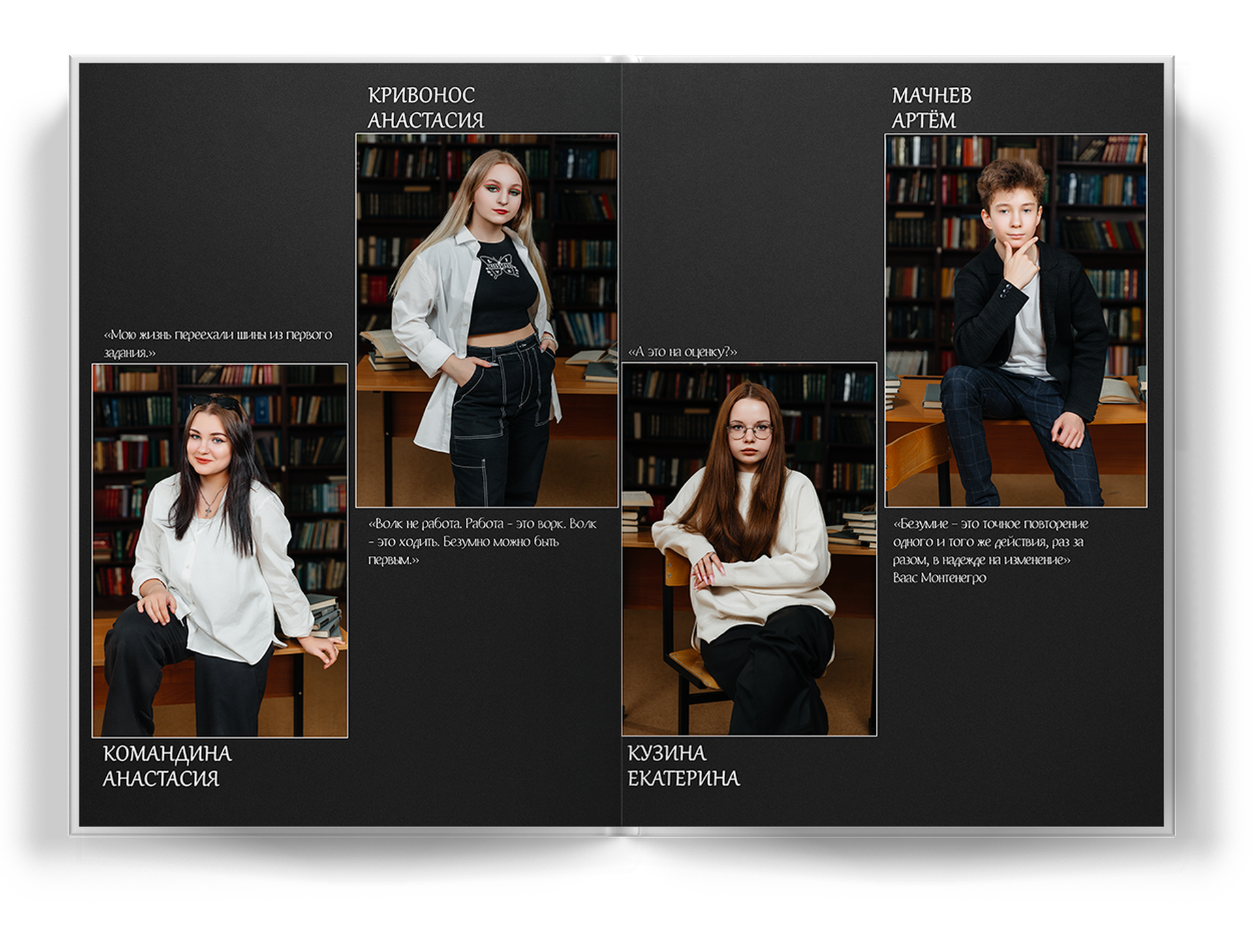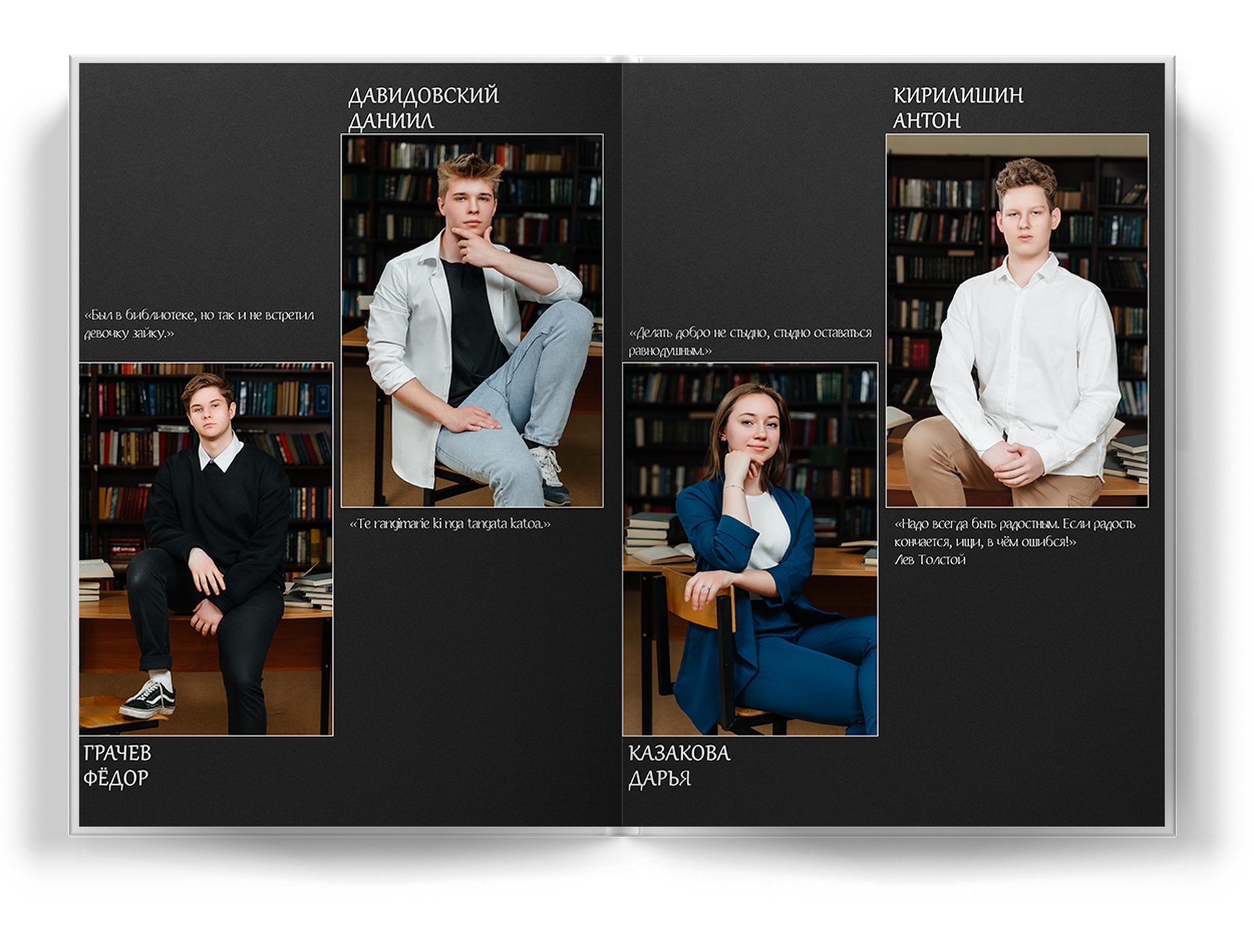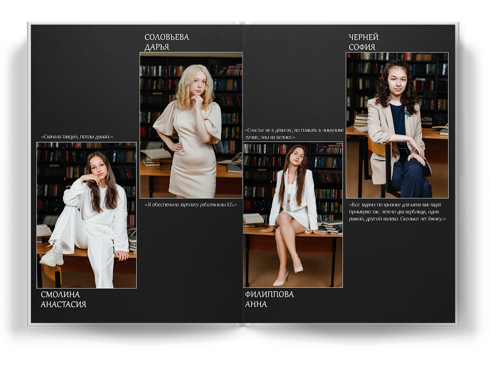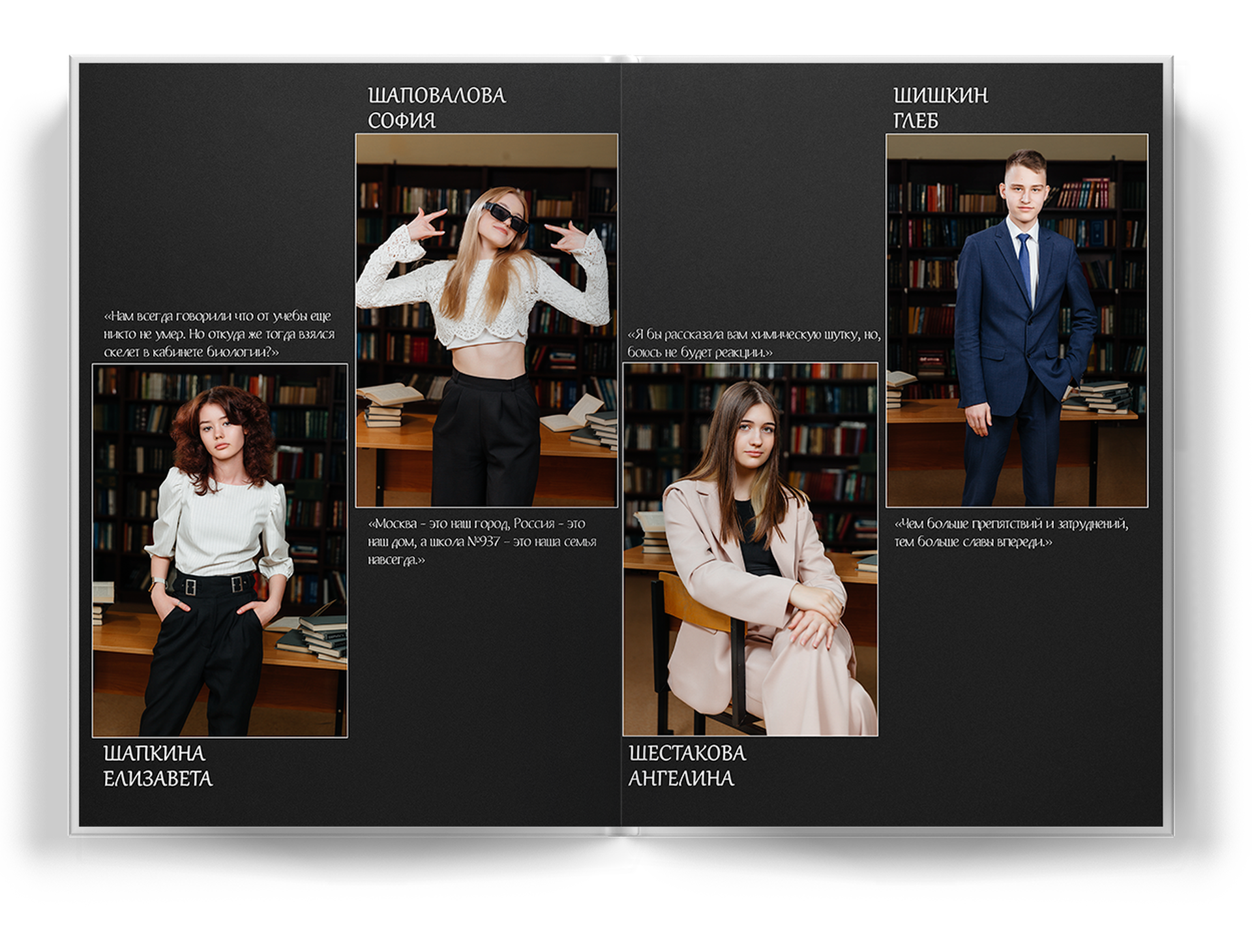 4 выпускника на разворот альбома;