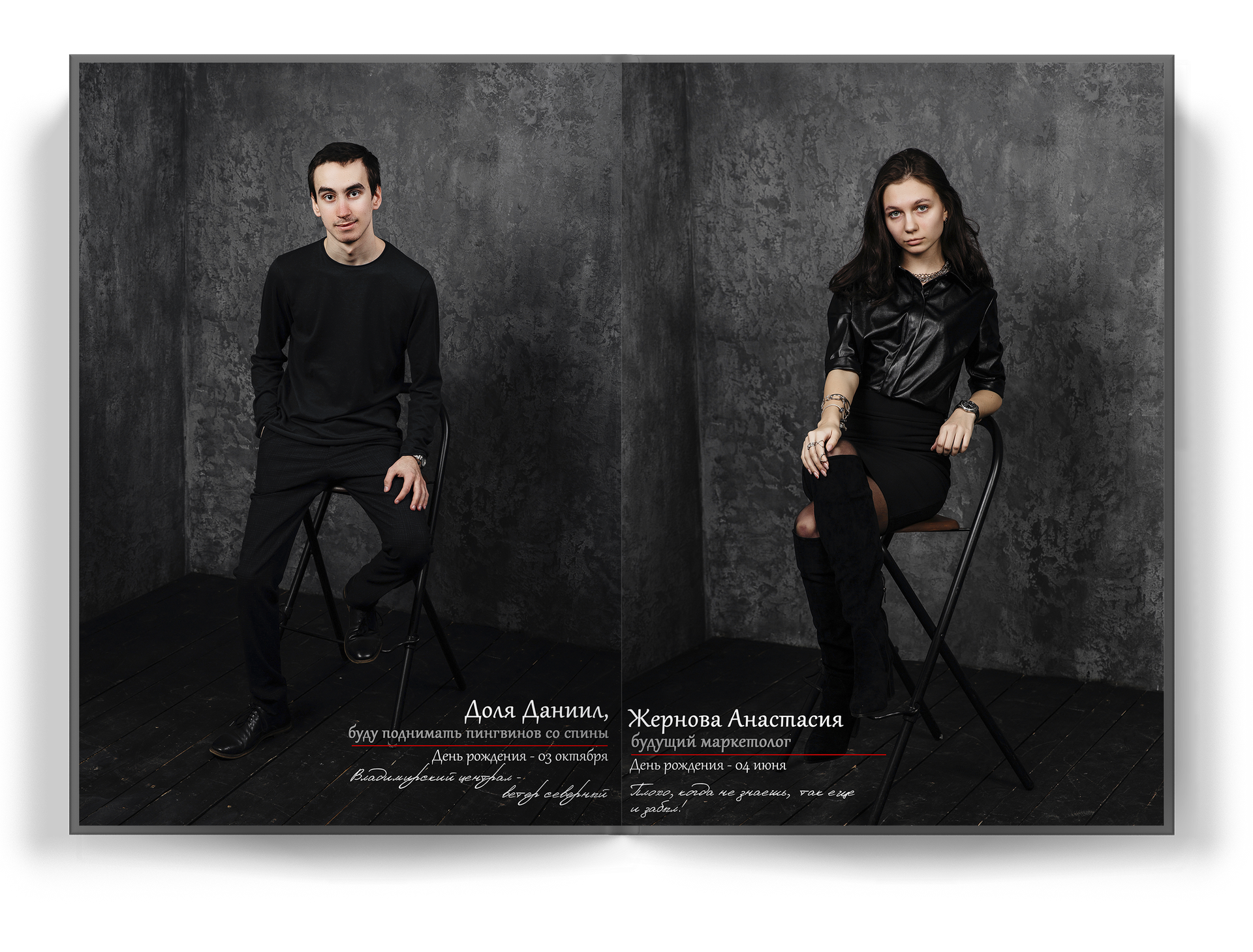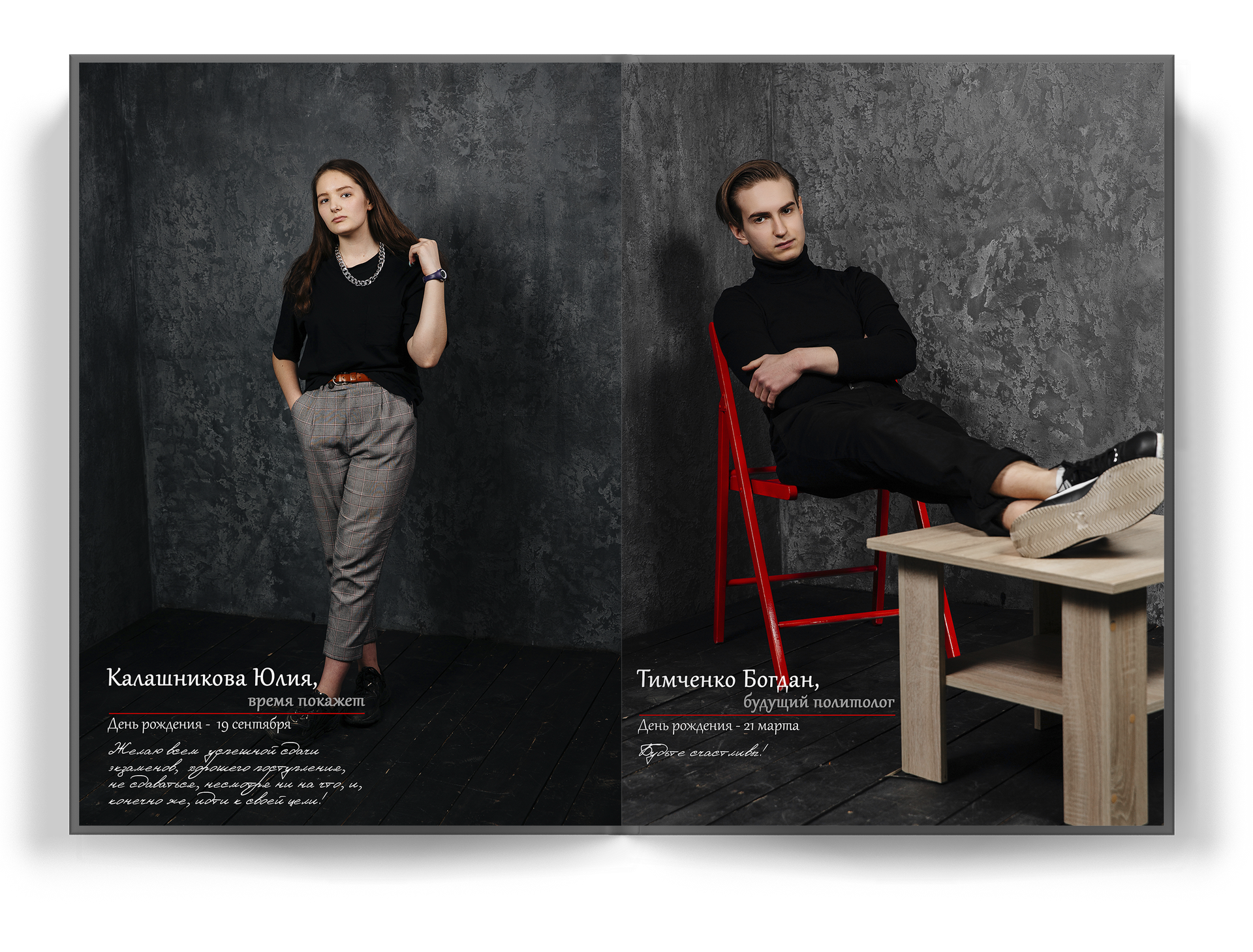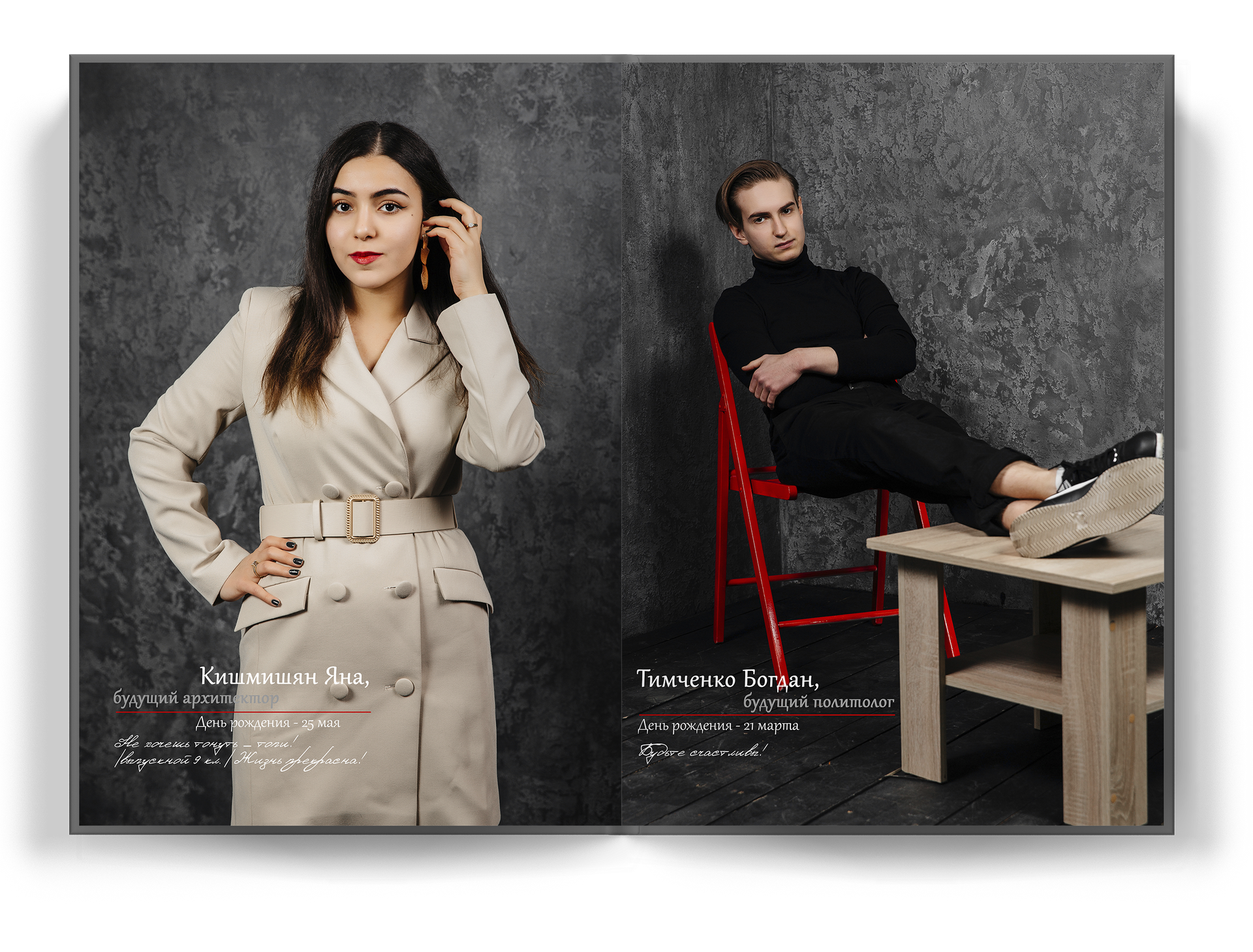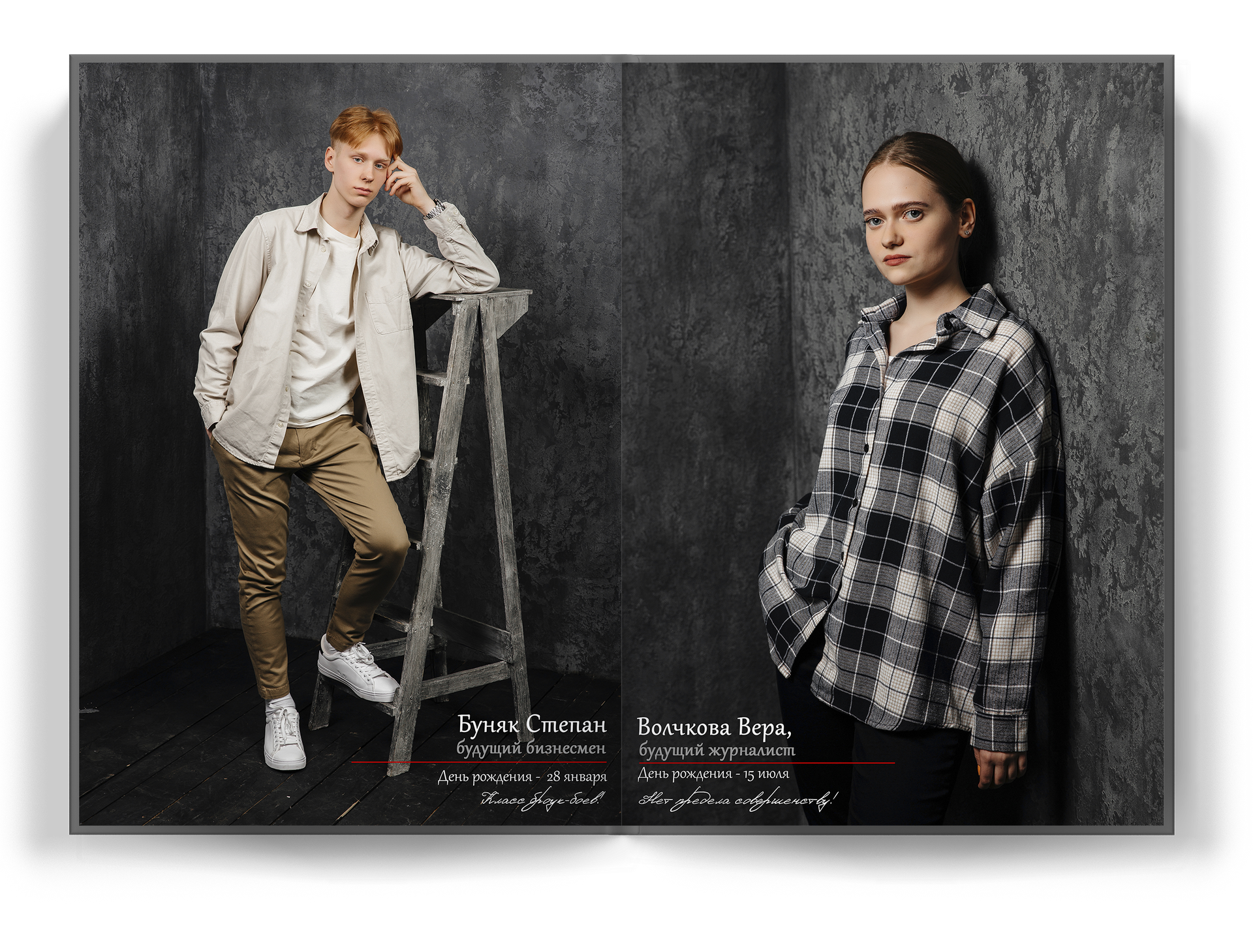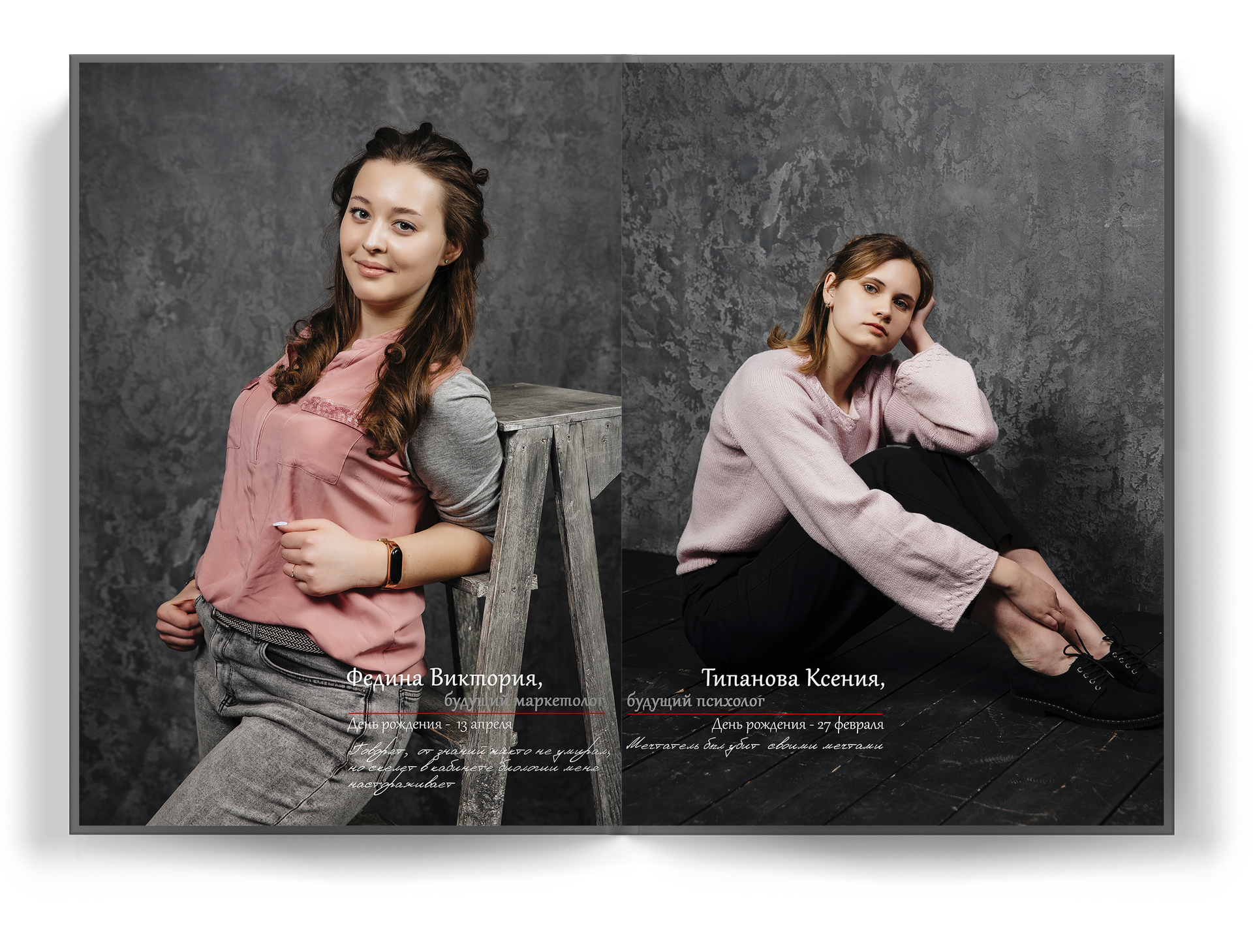 4 выпускника на разворот альбома;